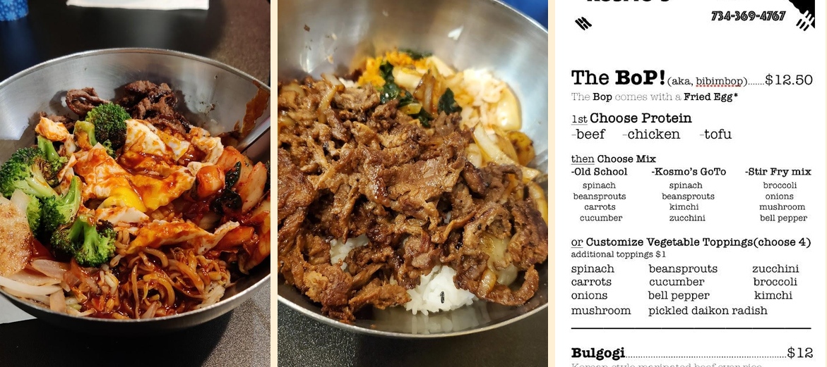 Kosmo's BopShop is a unique eatery in Ann Arbor known for its Bibimbop. It transformed from a simple breakfast diner to a robust street vendor concept. Since 2017, it has flourished on South Ashley Street. Here, the atmosphere feels casual and vibrant, embodying the spirit of a food truck while offering a cozy dining experience.